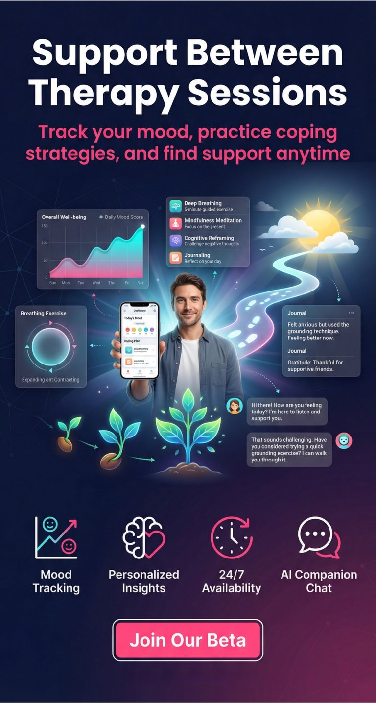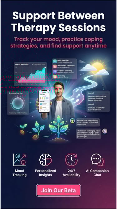 Learn how to support your mental health journey between therapy sessions with practical tools like mood journaling, mindfulness apps, and AI-powered platforms for self-reflection.